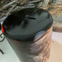 As velas são produzidas na cor branca e posteriormente recebem um banho de parafina com tingimento especial na cor preta, isso favorece a durabilidade e a queima uniforme.