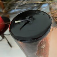 As velas são produzidas na cor branca e posteriormente recebem um banho de parafina com tingimento especial na cor preta, isso favorece a durabilidade e a queima uniforme.