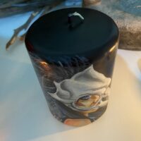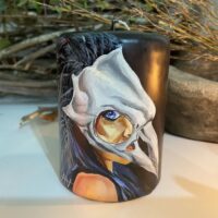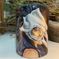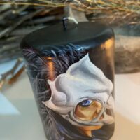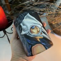 Vela Morrigan Skull pintada à mão Alluh Amon – Vela artística – Hand painted candle – Vela de deuses – Velas obras de arte