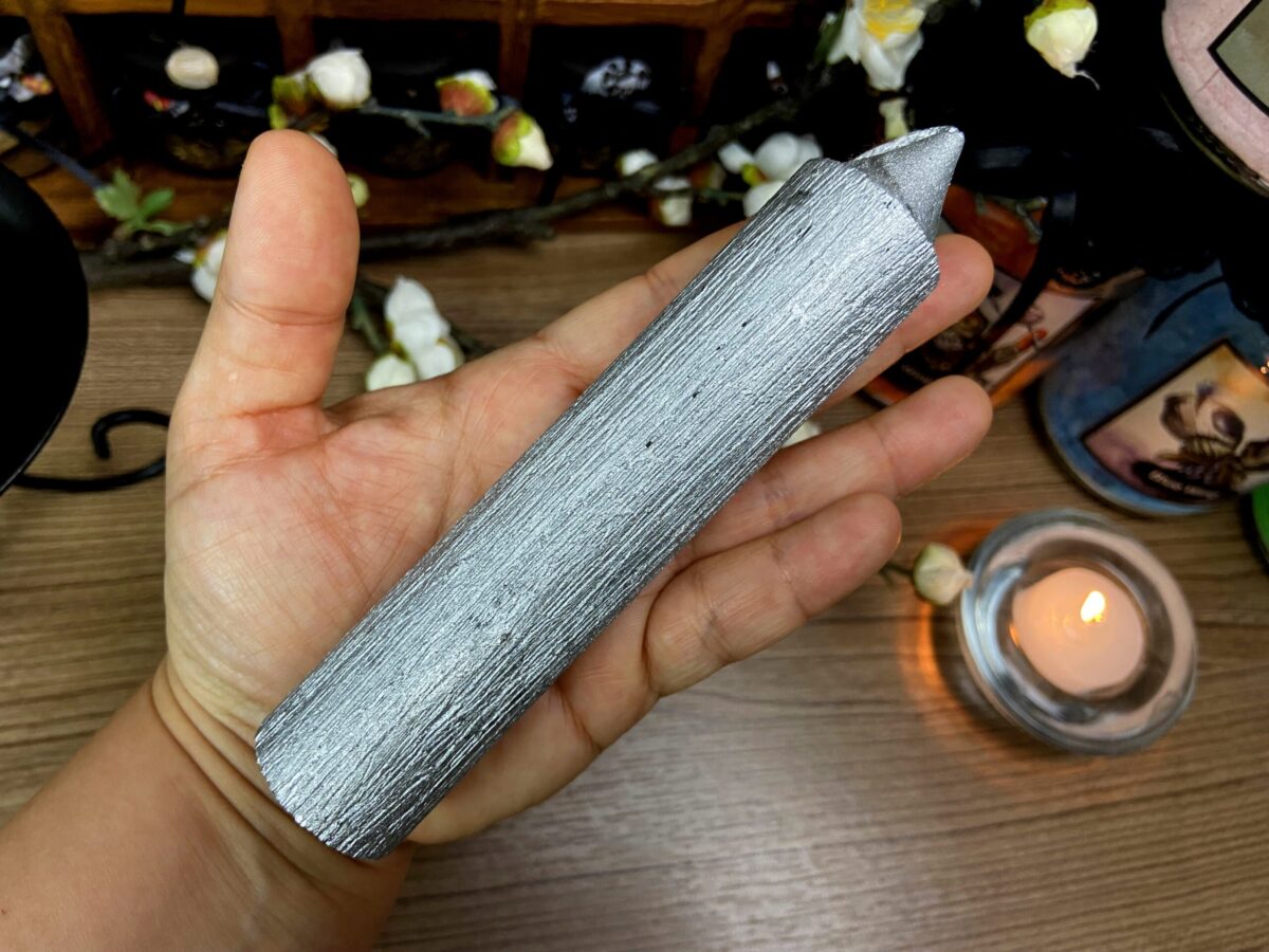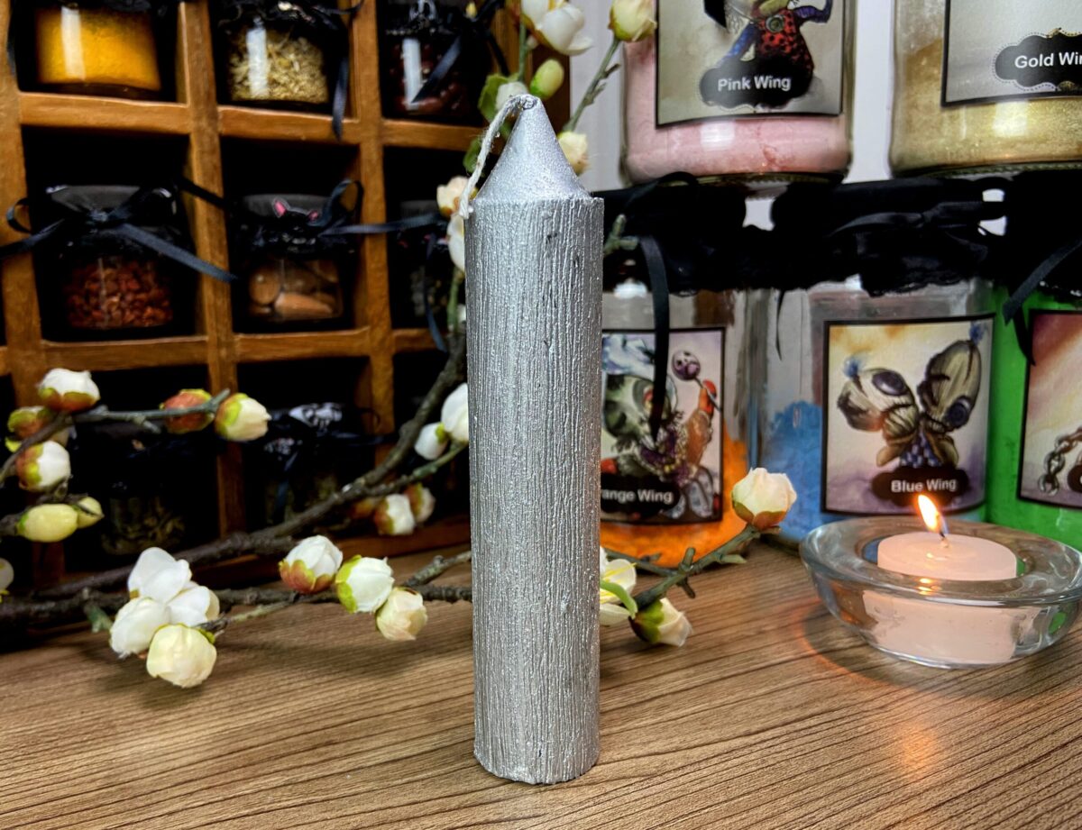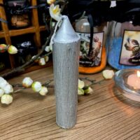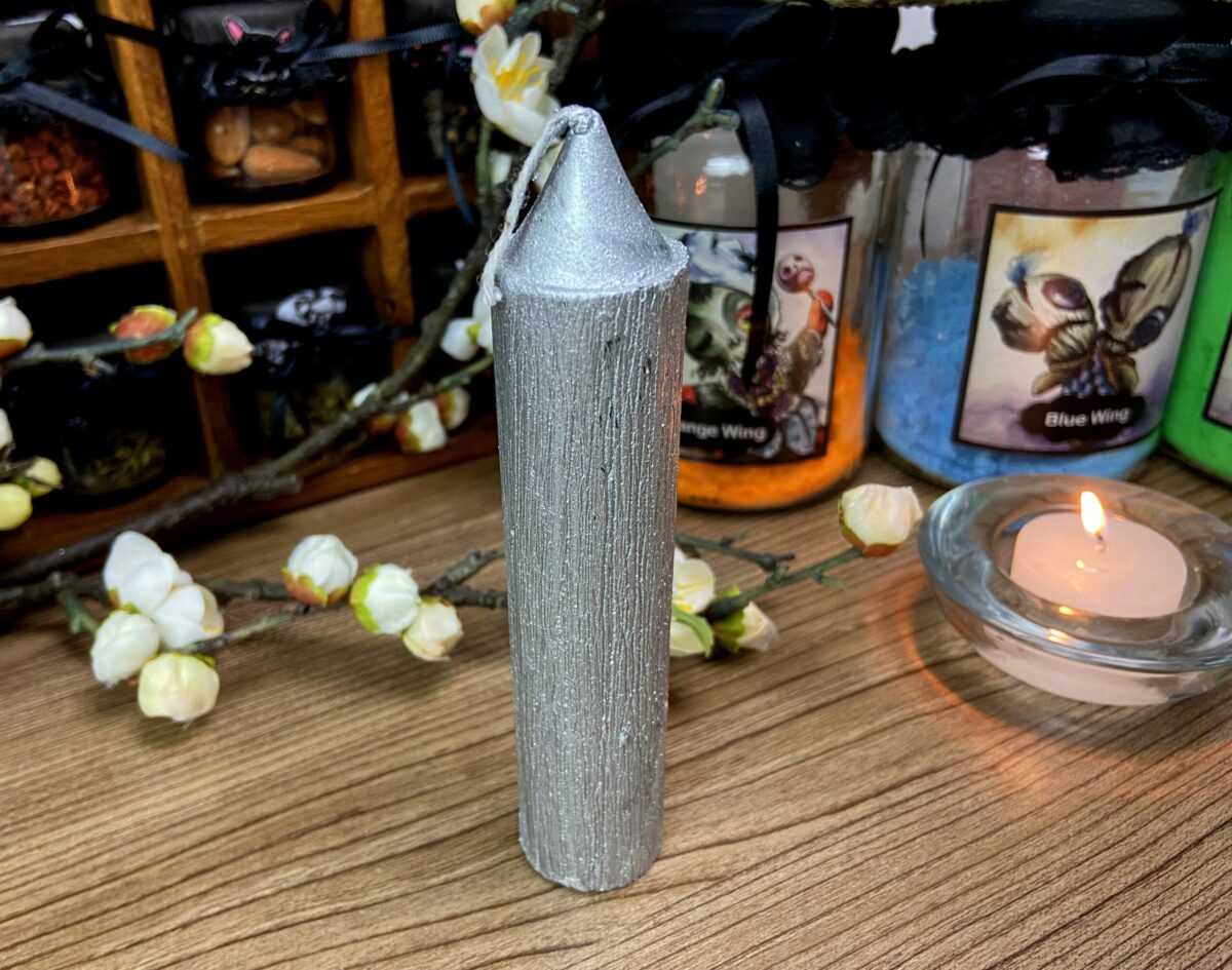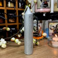 Lindíssima vela com acabamento escovado na cor Prata, perfeita para altares, rituais e feitiços.