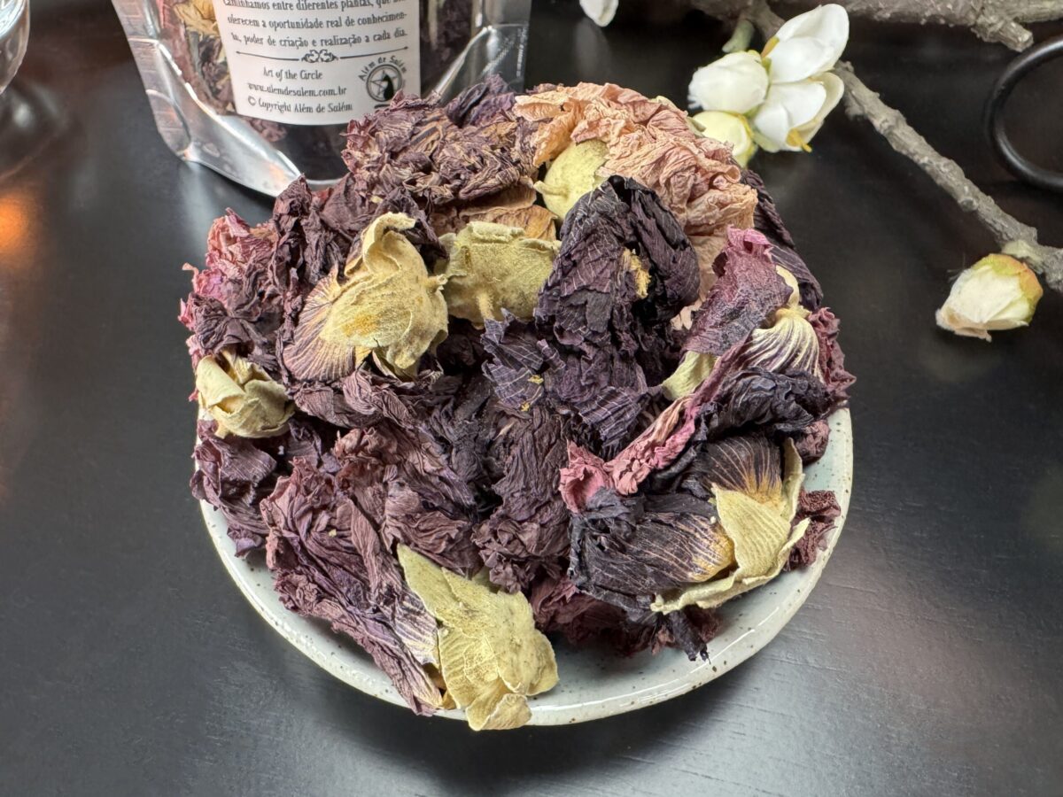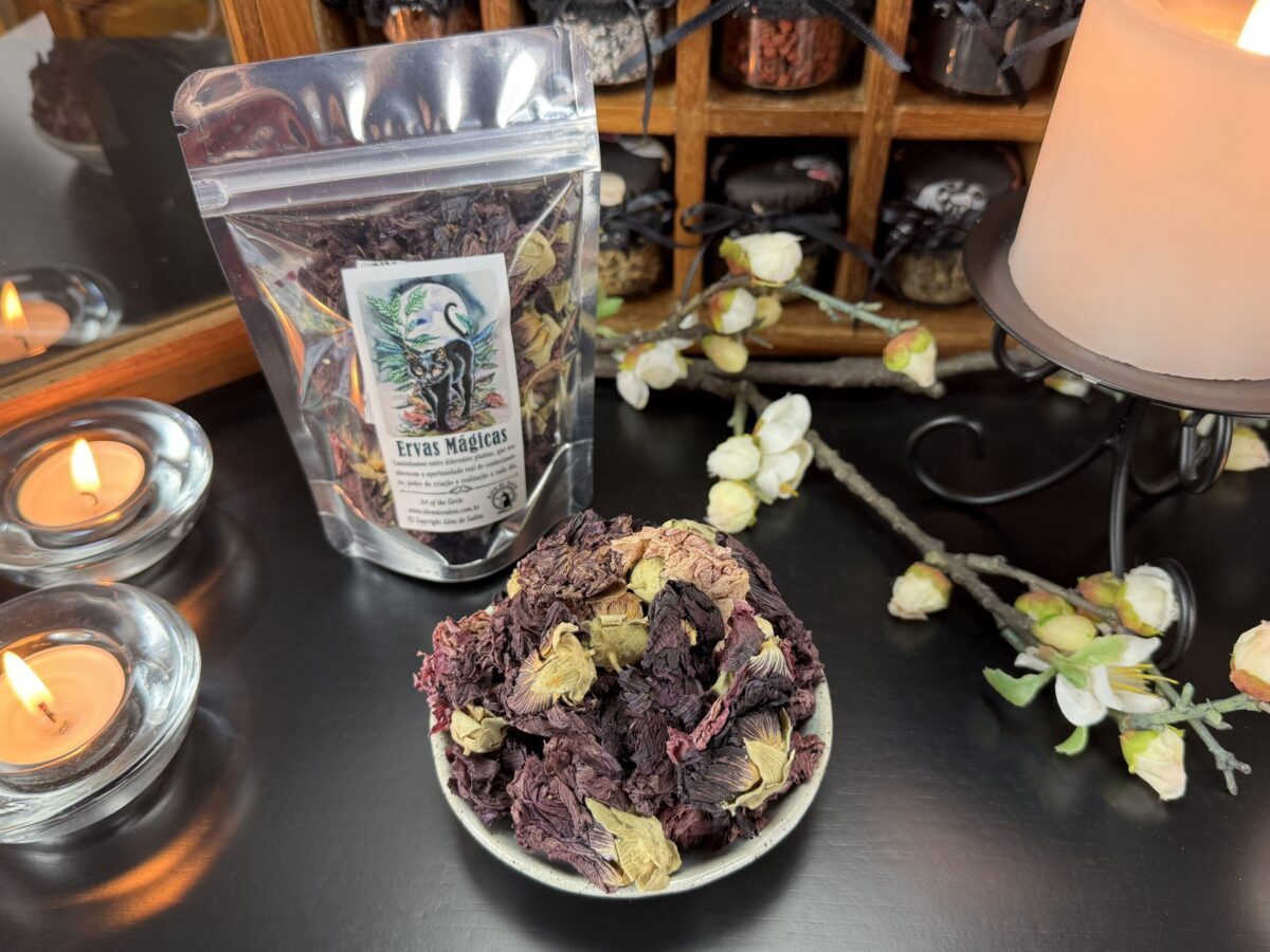 A Violet Hollyhock é destinada exclusivamente para uso mágico em rituais e feitiços. Não é indicada para consumo interno.