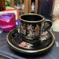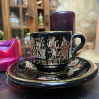 Esta Xícara é belíssima, na cor preta com imagens finamente desenhadas de Deuses do Olimpo, contornador de pintura em ouro.